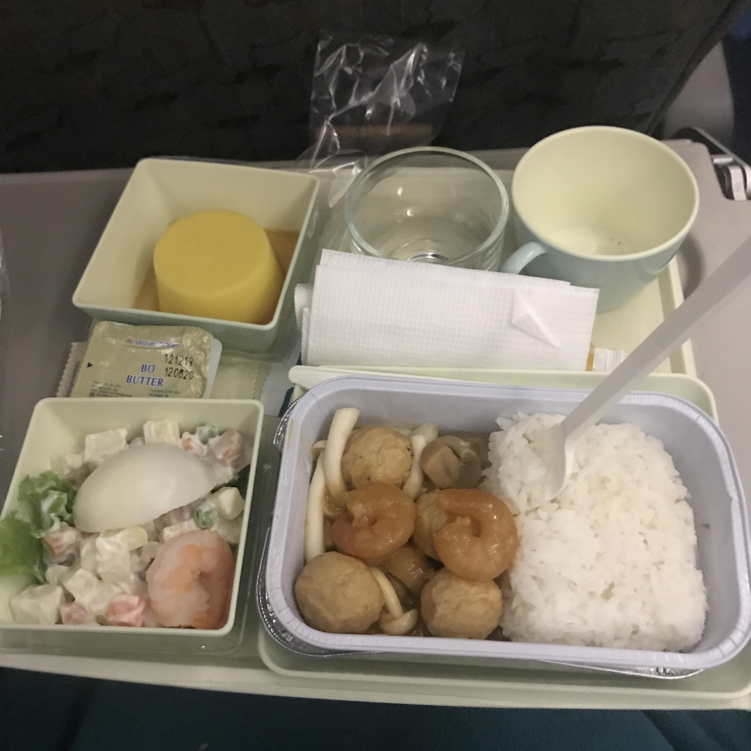 하지만 위의 사진이 당시 받았던 기내식 “해산물” 메뉴랍니다. 샐러드에도, 메인에도 새우들이 낭낭했어요. 하지만 새우 외에는 어묵과 버섯들 뿐이었어요. 자극적이지 않고 밤에 먹기 좋은 메뉴였습니다. 다른 선택지로는 치킨이 있었는데 그 메뉴는 향신료향이 왠지 많이 나서 역했다고 동행인이 그러더군요... 거를 수 있게 메뉴판을 찍었어야하는데 그러지 못해 후회가 됩니다.