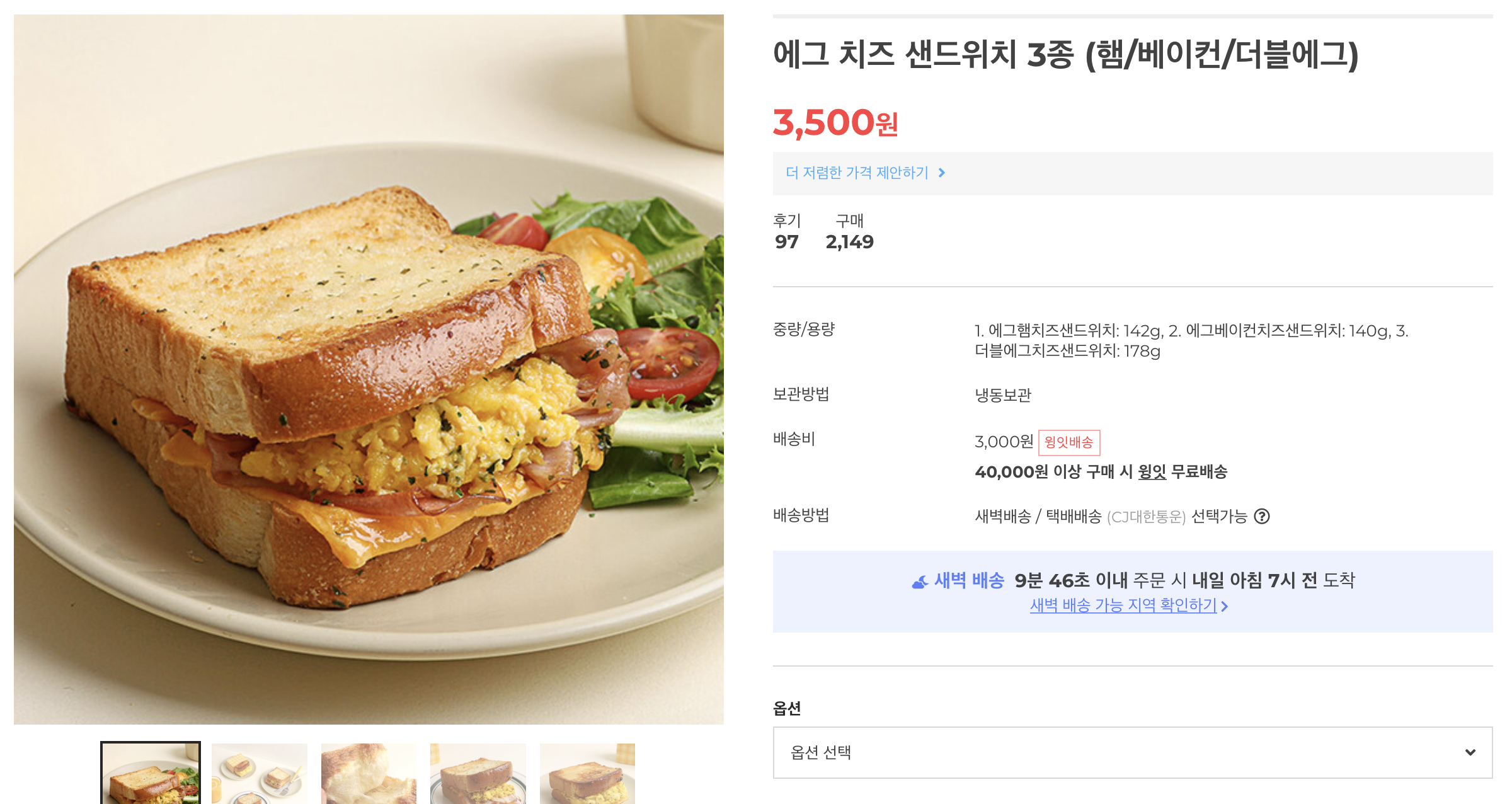 그래서 뭘 살까 고민을 하며 스크롤을 하다 보니 보이는 에그 치즈 샌드위치