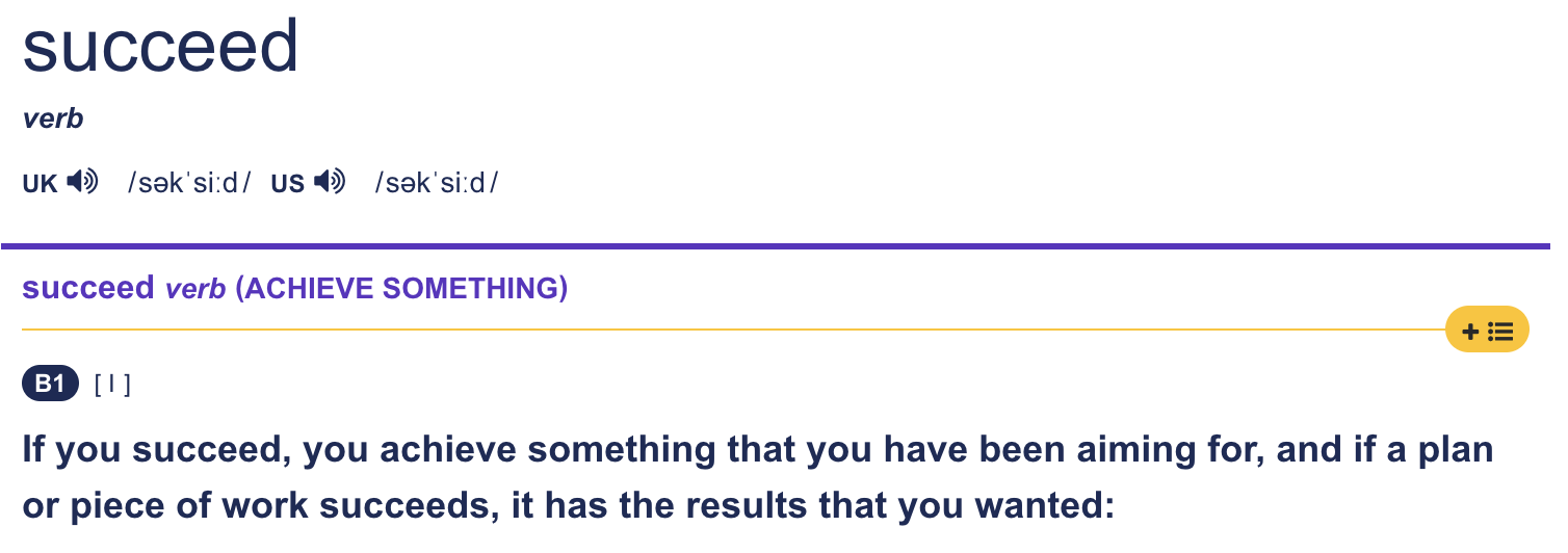 Cambridge dictionary 로 succeed 의 뜻을 알아보자.