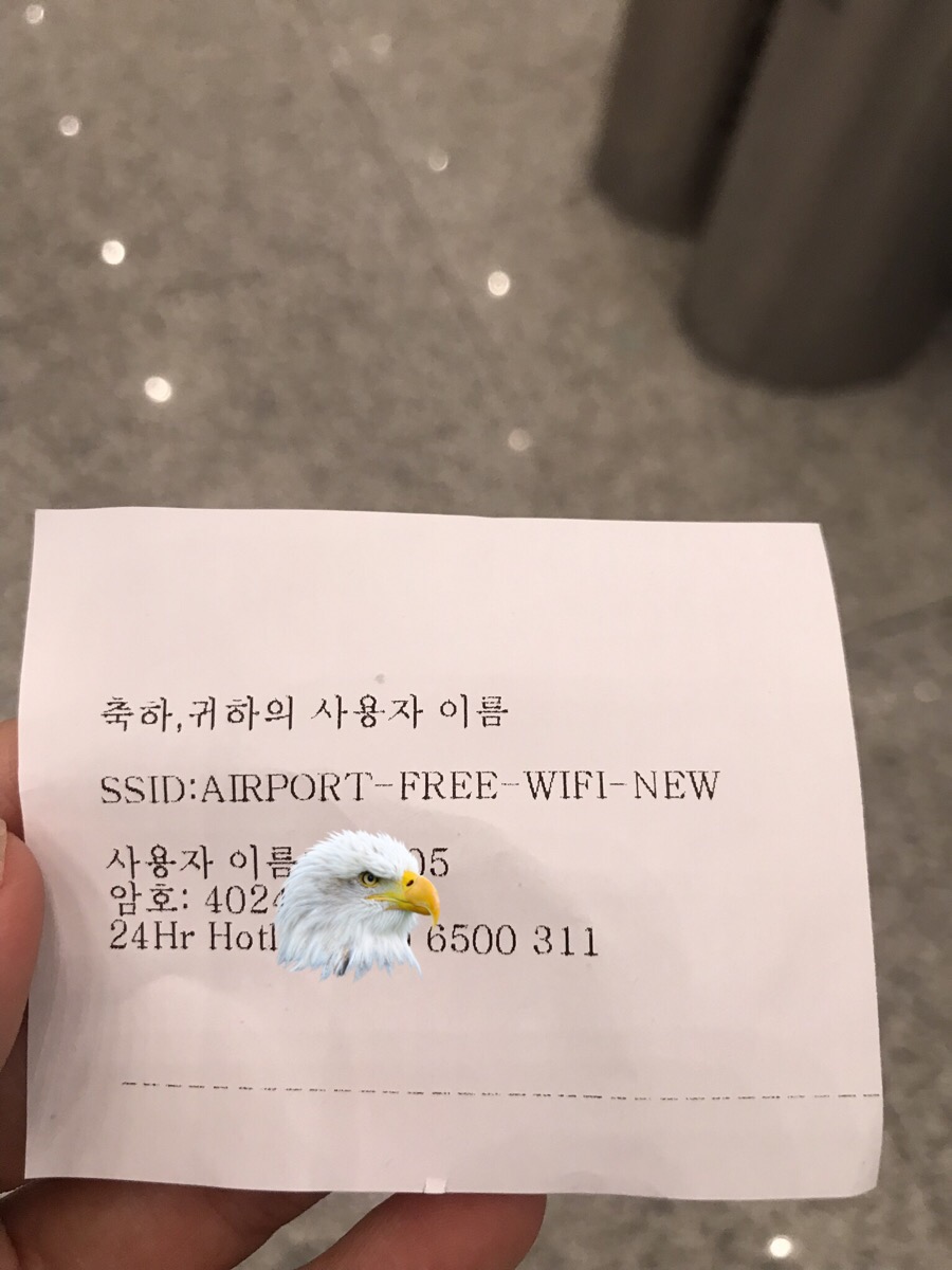 이렇게 종이가 나오면서 아이디 비밀번호를 줌.. 이걸 연결하면 바로 빵빵항 공항 와이파이를 사용할 수 있다.(중국이라서 구글 유튜브 인스타 페북 넷플릭스까지 다 안됨ㅋㅋㅋㅋ할 거 없음.. 네이버 웹툰만 하루종일 봄..저장한 넷플릭스 영상이 있다면 와이파이를 끄고 실행하면 재생할수있다.)