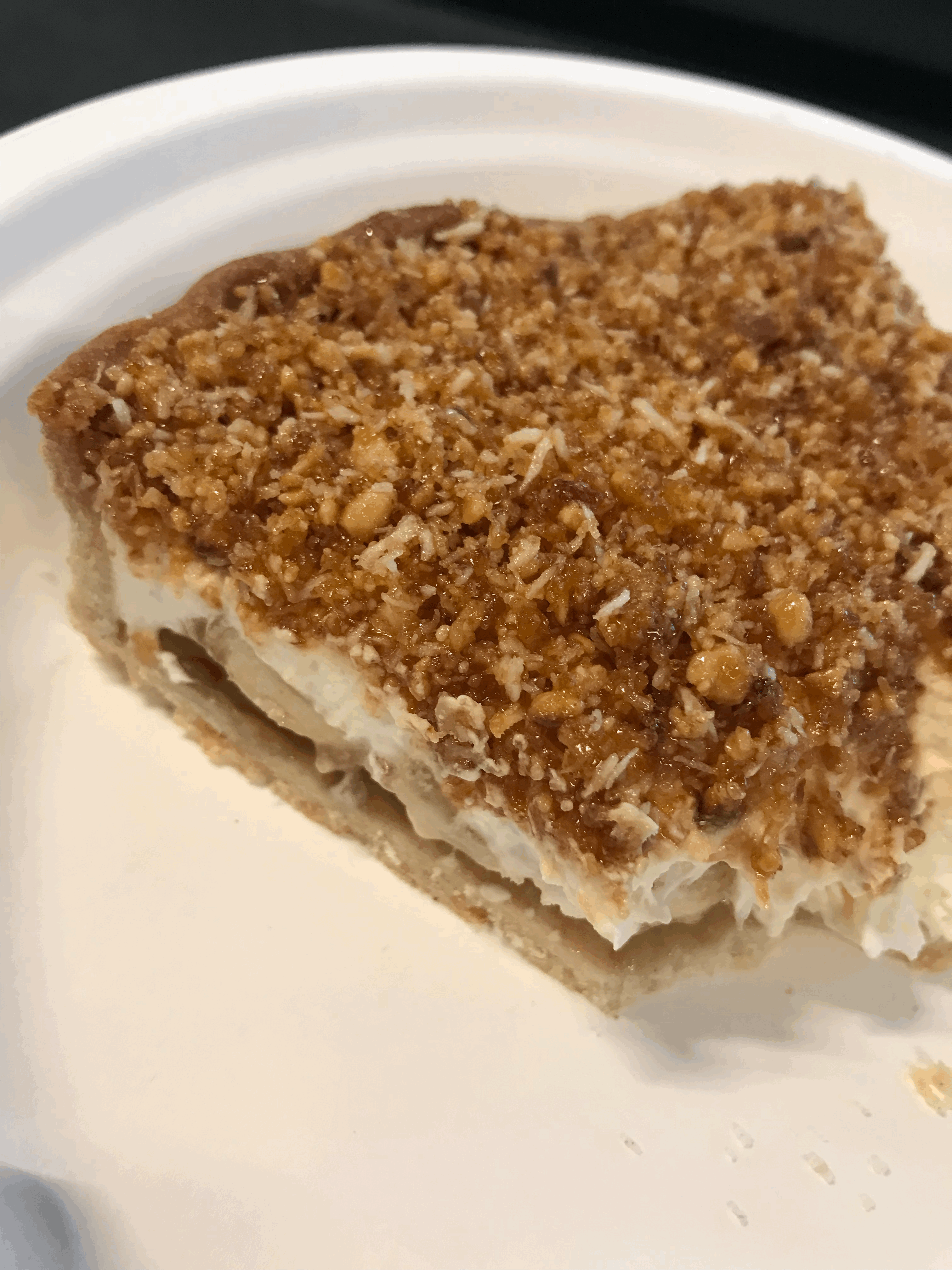 이 바나나 파이의 맛은 정말 놀라웠다. 인공적인 바나나 맛 하나도 없고 (바나나우유 인공 바나나맛 극혐하는 1인) 진짜 바나나가 타르트지 위로 깔려있고 그 위로는 크림, 그 위에는 다져진 견과류 (아마 헤이즐넛?) 이 잔잔하게 깔려있는 파이였다.