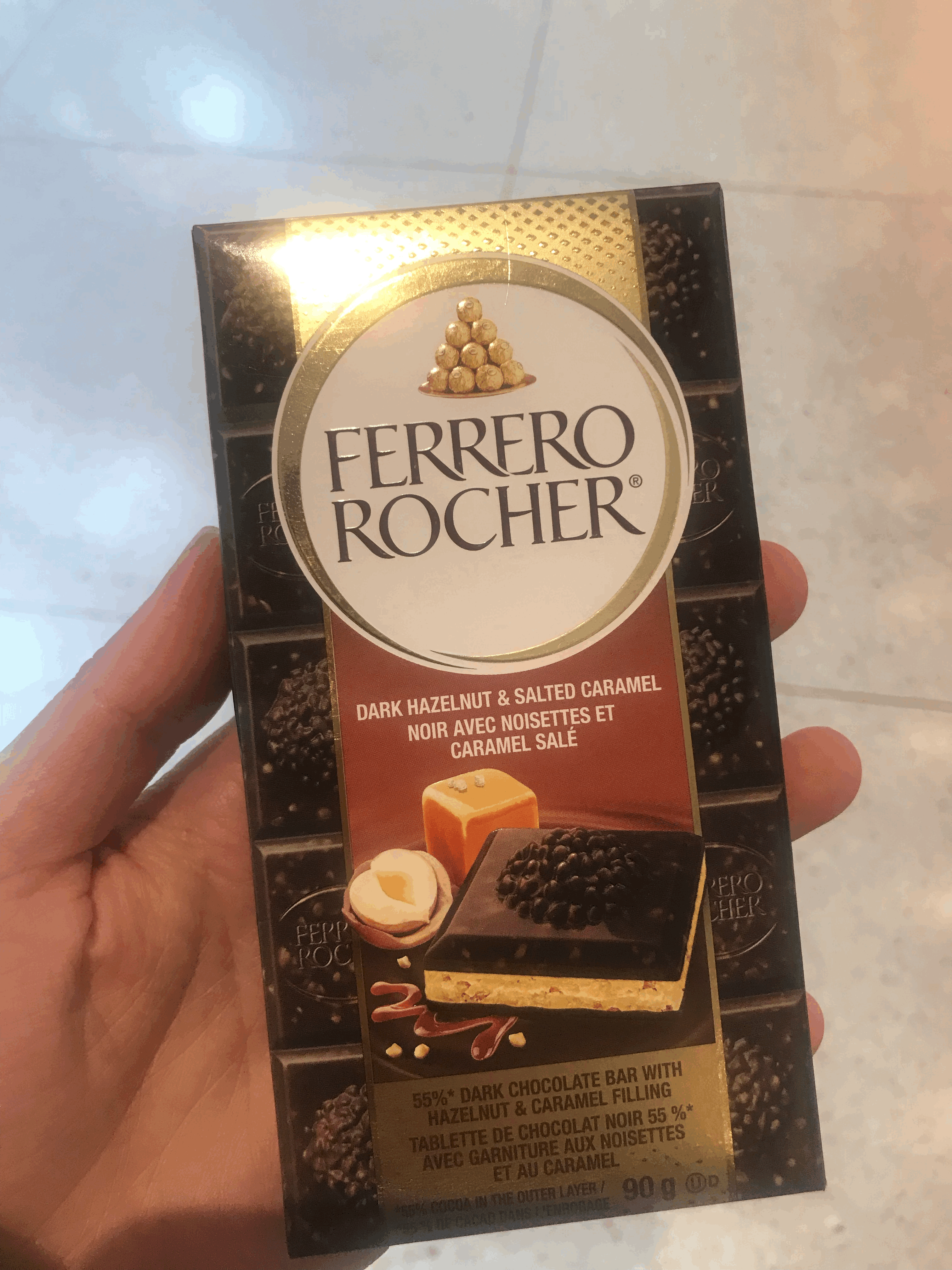 그래서 무슨맛일까 궁금해서 하나 집어들었다. 헤이즐넛과 함께 카라멜이 가미된 필링이 안에 들었다고 한다.