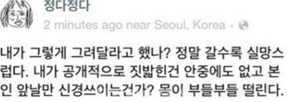 이에 충격을 받은 정다정작가는 페이스북에다 이렇게 미티를 저격하게된다.